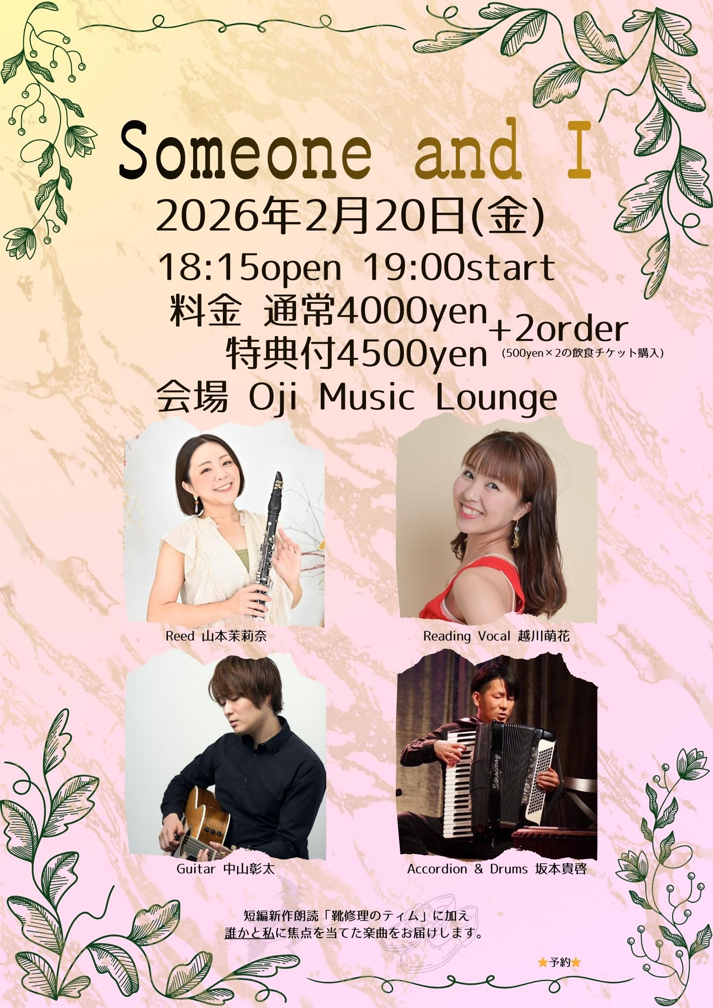 Music Charge adv.¥4,000 / door ¥4,500 + 2オーダー