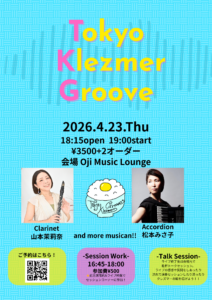 出演: Clarinet 山本茉莉奈 / Accordion 松本みさ子 / and more…!!